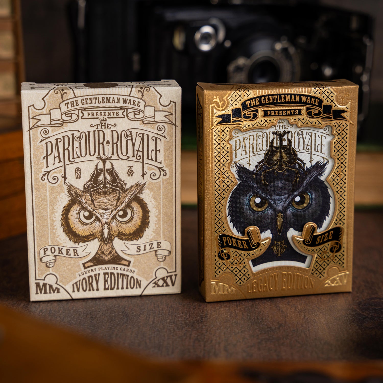 A royal pairing for true connoisseurs. This bundle includes both Ivory and Legacy editions of Parlour Royale—two masterfully crafted decks by Stockholm17 and The Gentleman Wake—plus a set of 5 stickers and the enamel pin. Elegant, limited, and fit for the finest of tables.